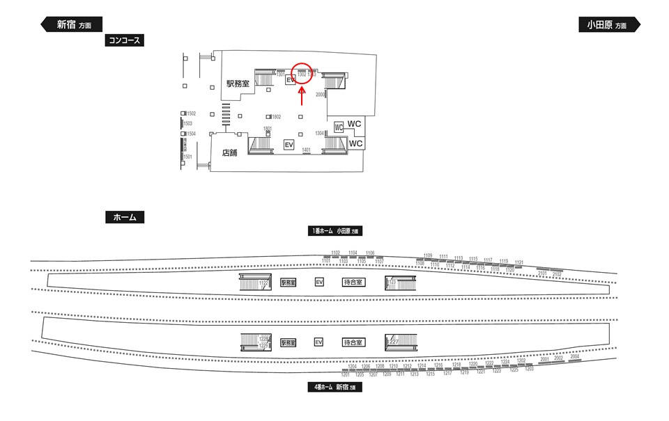 小田急 経堂駅、改札内コンコースの駅広告(駅看板)の設備紹介です。