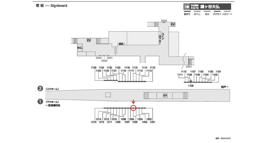 主にホームにて電車を待つ方にご覧頂ける場所にございます。その他に停車中の車内からも視認できるため鎌ヶ谷大仏駅を中心とした京成線沿線のご案内にもご利用頂けます。