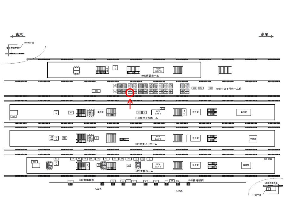 ○中央下りホーム前№301 線路前(JR中央線快速 八王子・高尾・甲府方面) |