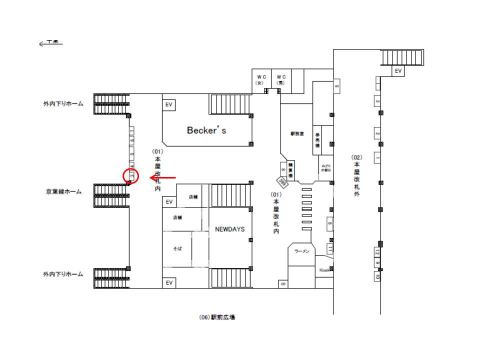 外房線・内房線から京葉線に乗り換える方にご覧頂ける場所にございます。