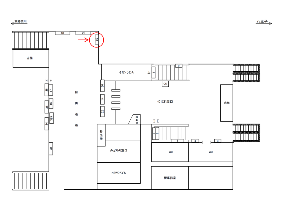 駅利用者の移動動線上にありますので、周辺にある店舗施設への誘導案内や周知に適しております。見通しの良い駅構内に設置された看板は、中山駅利用者を対象とした長期的な広告をお考えの事業主様にお勧めです。