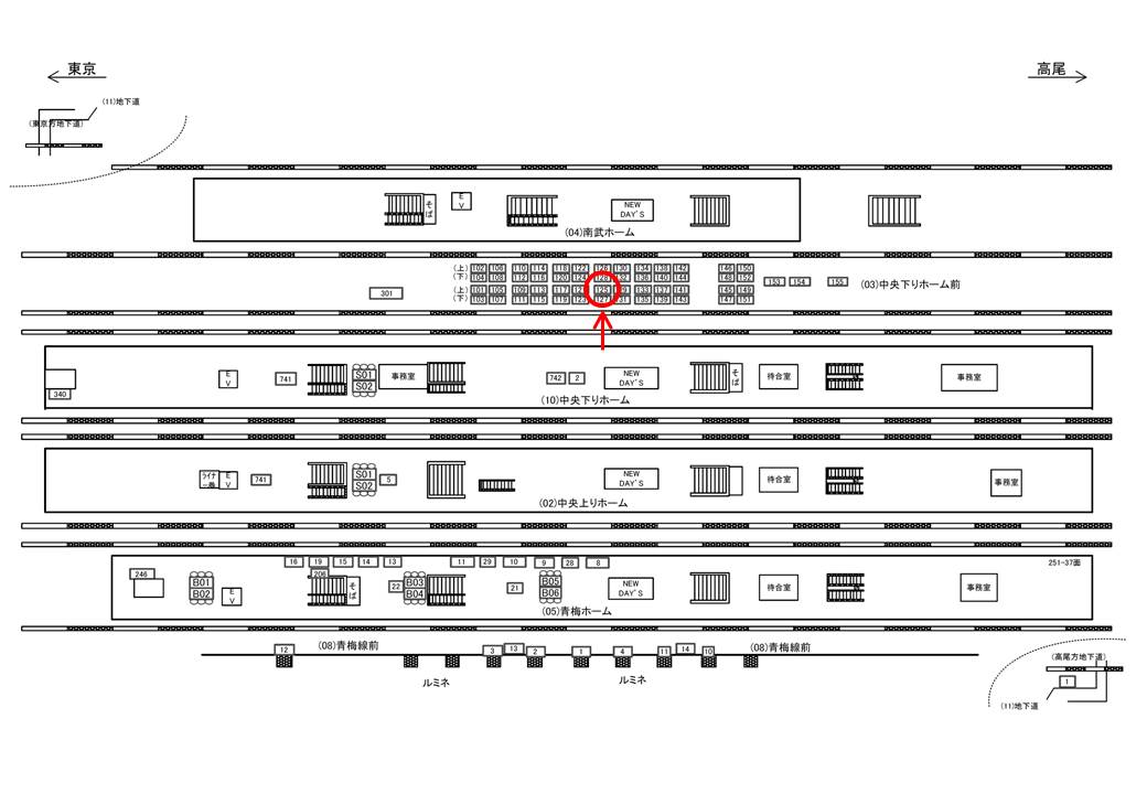 ○中央下りホーム前№123 線路前(JR中央線快速 八王子・高尾・甲府方面) |
