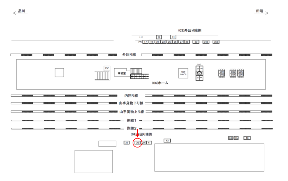 ○外回り線側№41 線路前(JR山手線 上野・東京方面) |