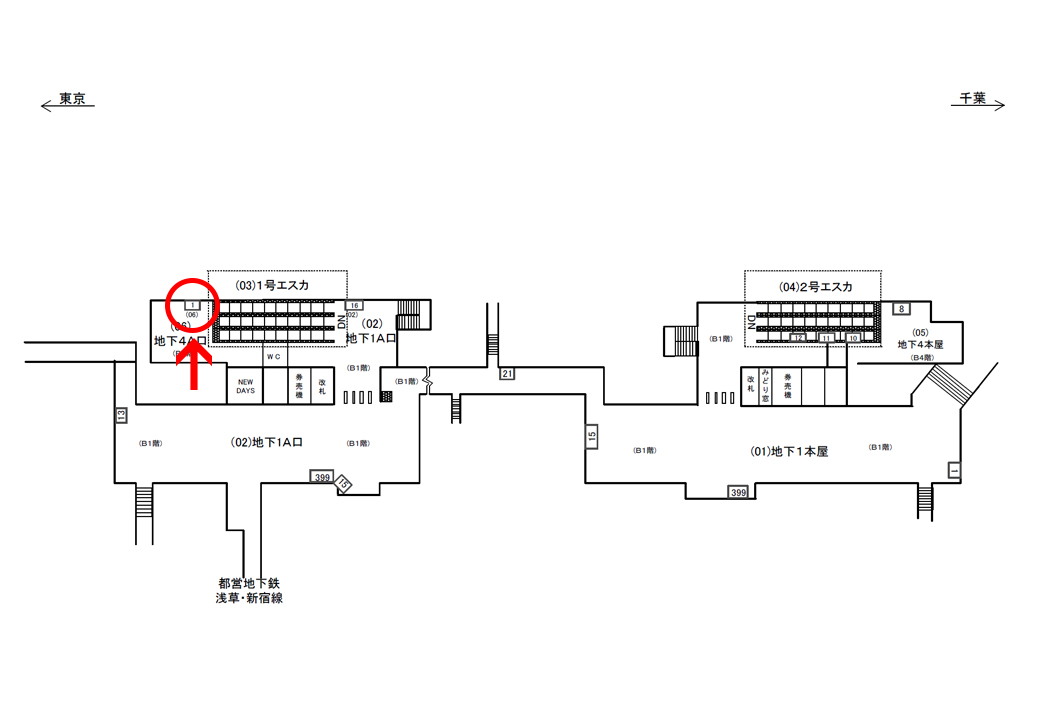 ■ 駅看板「JR 馬喰町駅 地下4A口№1」の広告ロケーション