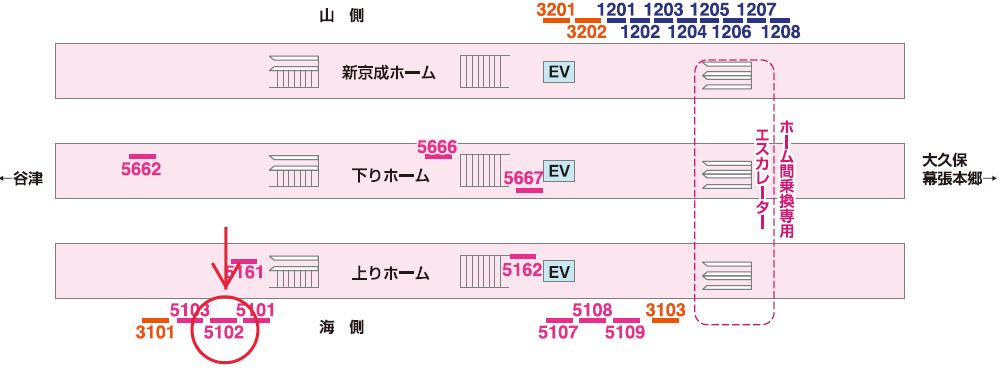 上りホーム(船橋・上野方面)のエスカレーター近くにある看板です。