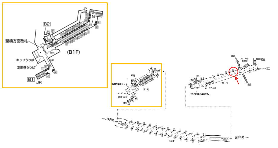 ○千代田線№27 改札外コンコース(聖橋方面改札 JR線乗り換え側) |