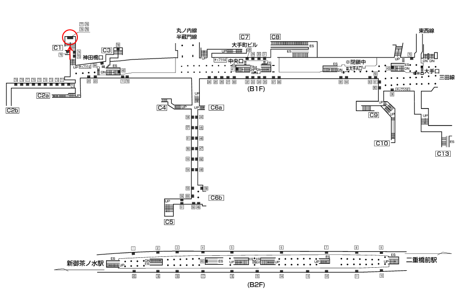 ○千代田線№38 改札外コンコース(神田橋方面改札/C3出口付近) |