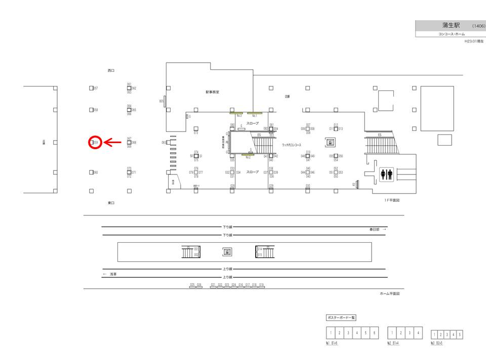東武 蒲生駅、コンコースの駅広告(駅看板)です。
