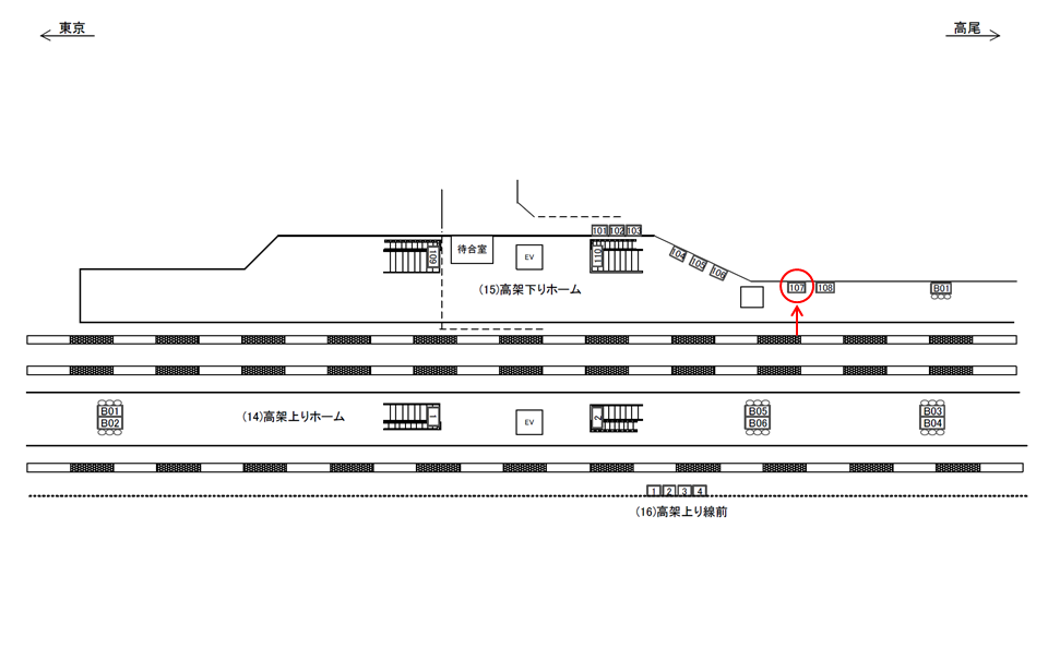 中央線下りホームの背中壁面に設置された電飾タイプの広告看板です。上りホームからは線路を挟む形で正対する位置にございます。