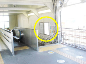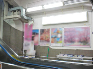 JR大久保駅の駅構内コンコースにある駅広告(駅看板)設備のご紹介です。ホームと北口改札を繋ぐ階段横(壁面)に設置されている広告看板です。