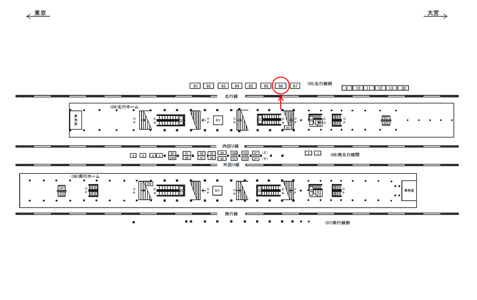 ○北行線側№95 線路前(京浜東北線、上野・大宮方面) |