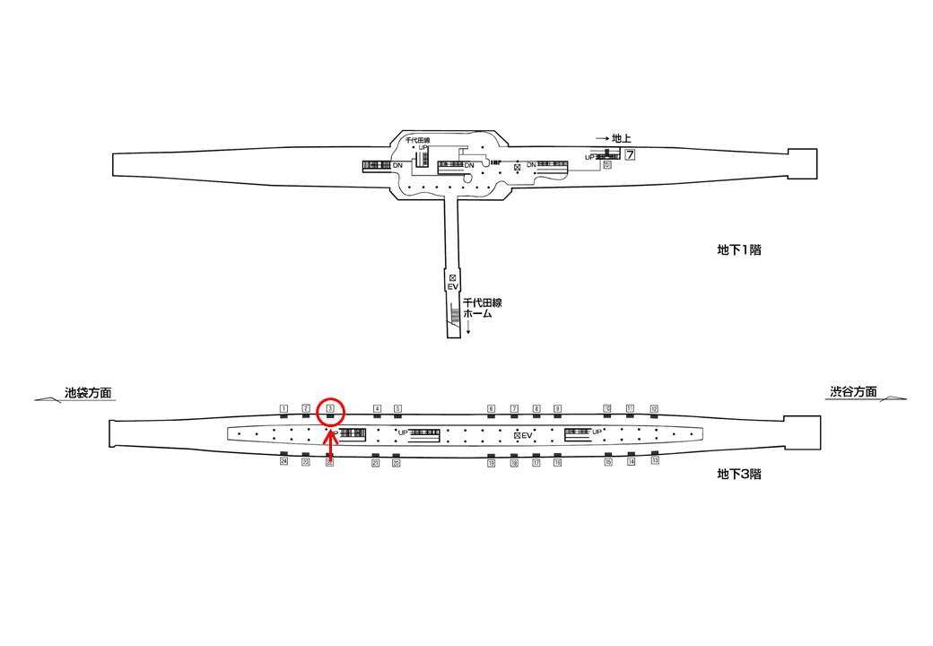 ○千代田線№7 線路前(東京メトロ千代田線 代々木上原・伊勢原方面) |