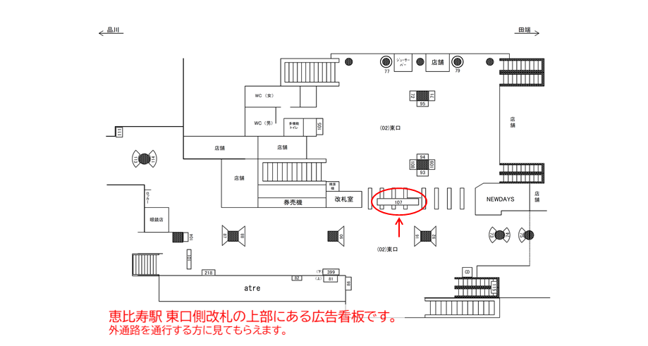 ○東口№75 改札外コンコース(東口側改札 アトレ方面) |