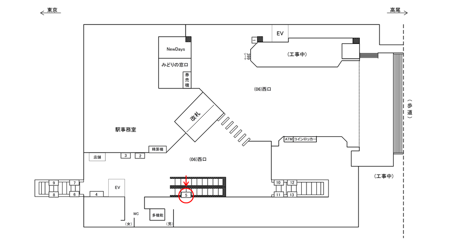 西口側改札の中にあります。中央線ホームへ下りる際の階段横壁面に設置された広告です。ホームと西口改札を行き来される方がこの階段を利用します。