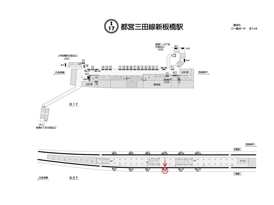 ホーム中ほどにございます。日々、新板橋駅を利用される方々への広告宣伝にご利用ください。