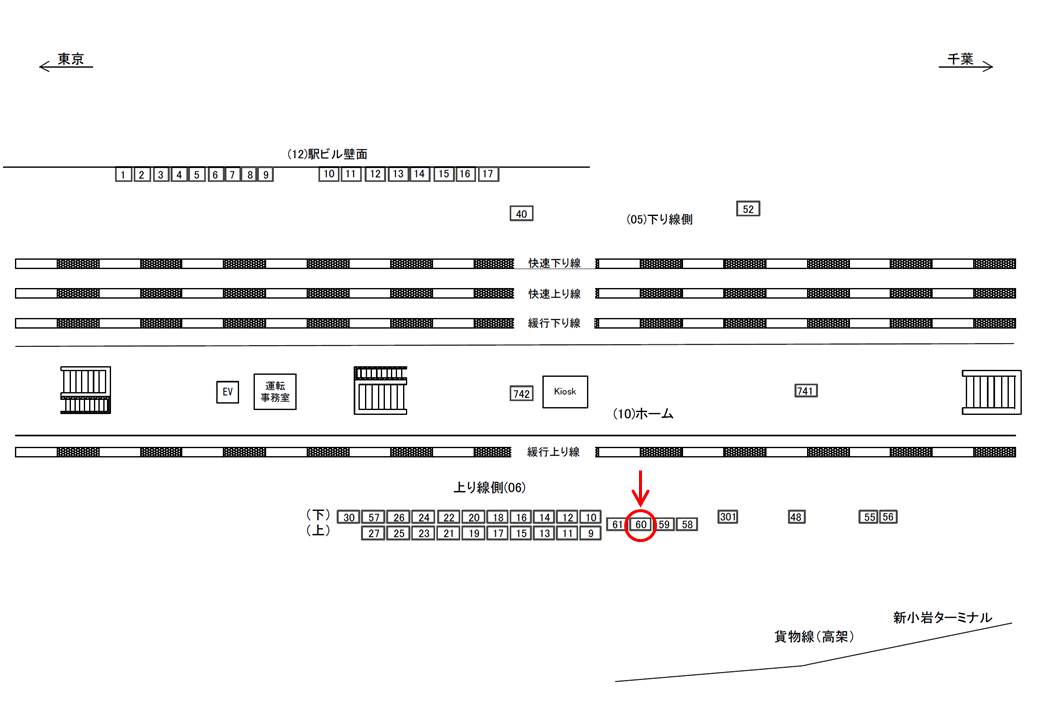 ホーム中ほどにあり、秋葉原・新宿・中野方面への電車をお待ちになる方に正対いたします。
