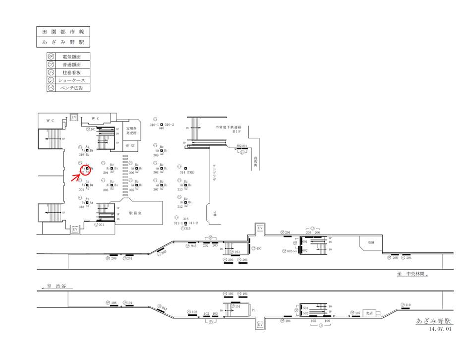 東急 あざみ野駅、コンコースの駅広告(駅看板)の設備です。