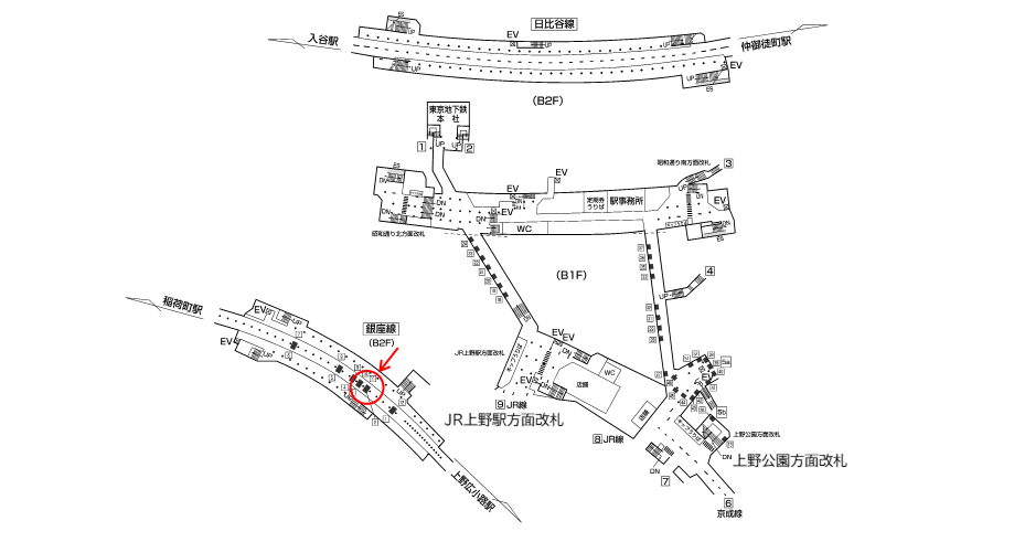 東京都台東区に所在する東京メトロ銀座線の駅です。東京メトロ日比谷線のほかJR山手線・京浜東北線・常磐線・京成本線に乗り換え可能です。上野恩賜公園やアメヤ横丁などがあり、外国人にも人気の街です。
