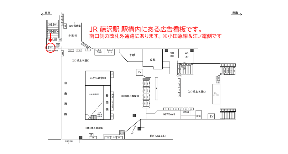 駅看板「JR 藤沢駅 橋上本屋口№81」