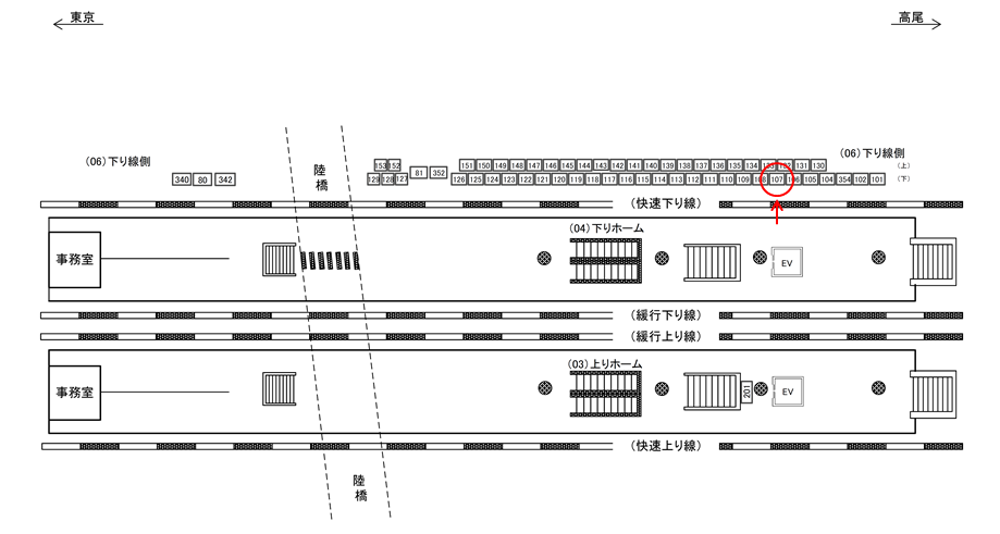 線路前(JR中央線快速、新宿・立川・八王子・高尾方面)