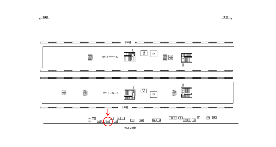 ○上り線側№17 線路前(JR埼京線 池袋・新宿・大崎・りんかい線方面) |