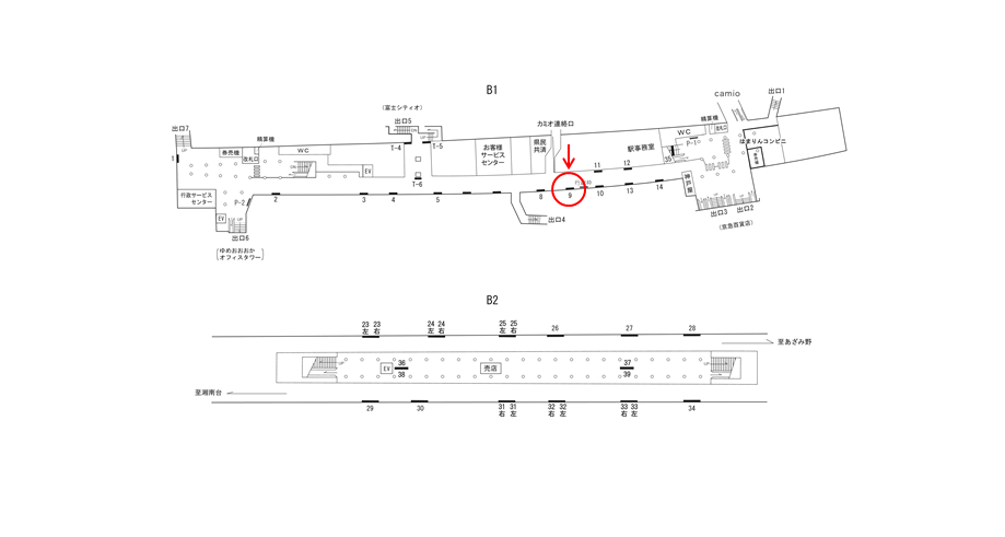 出口№4、カミオ連絡口のほど近くに位置しております。
