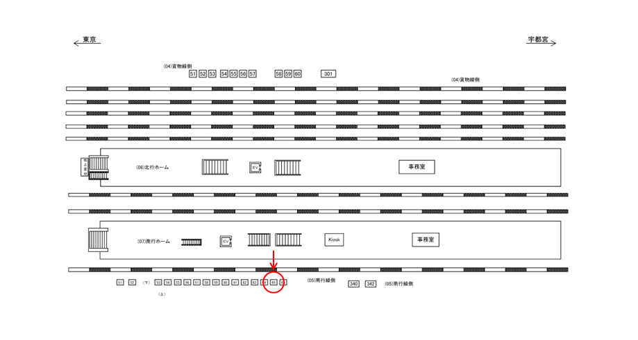 ○南行線側№56 線路前(JR京浜東北線 上野・東京・大船方面) |