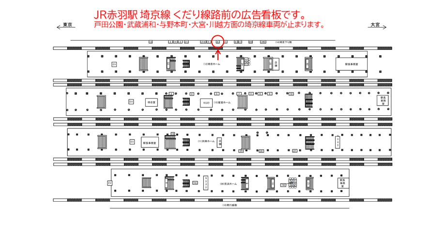 ■ 駅看板「JR 赤羽駅 埼京下り側№6」の広告ロケーション