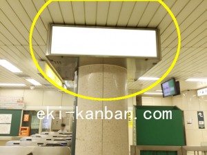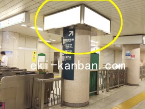 A8出口(小学館ビル方面)、A9出口(ちよだプラットフォームスクウェア方面)側改札付近の柱上部に設置された電飾タイプの広告看板です。