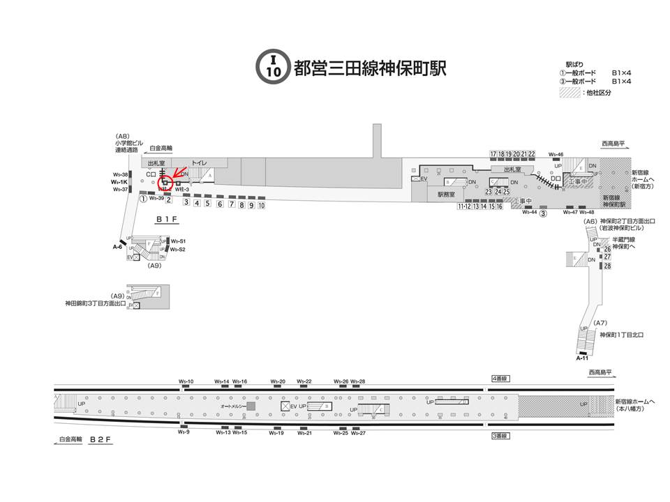 都営 神保町駅、コンコースの駅広告(駅看板)設備のご紹介です。