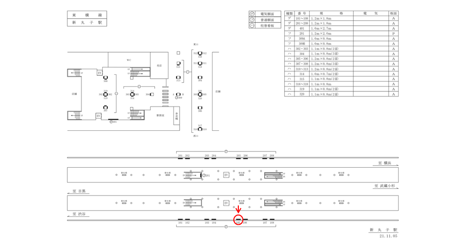 駅看板「東急東横線 新丸子駅 電気額面 №105」