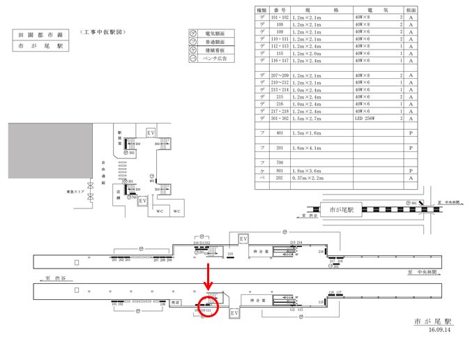東急 市が尾駅、ホームの駅広告(駅看板)です。