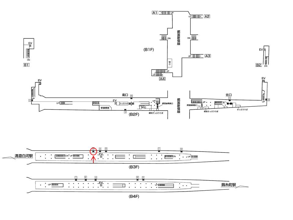 猿江方面改札(A1~4・B1)へ向かうエスカレーターが付近にございます。