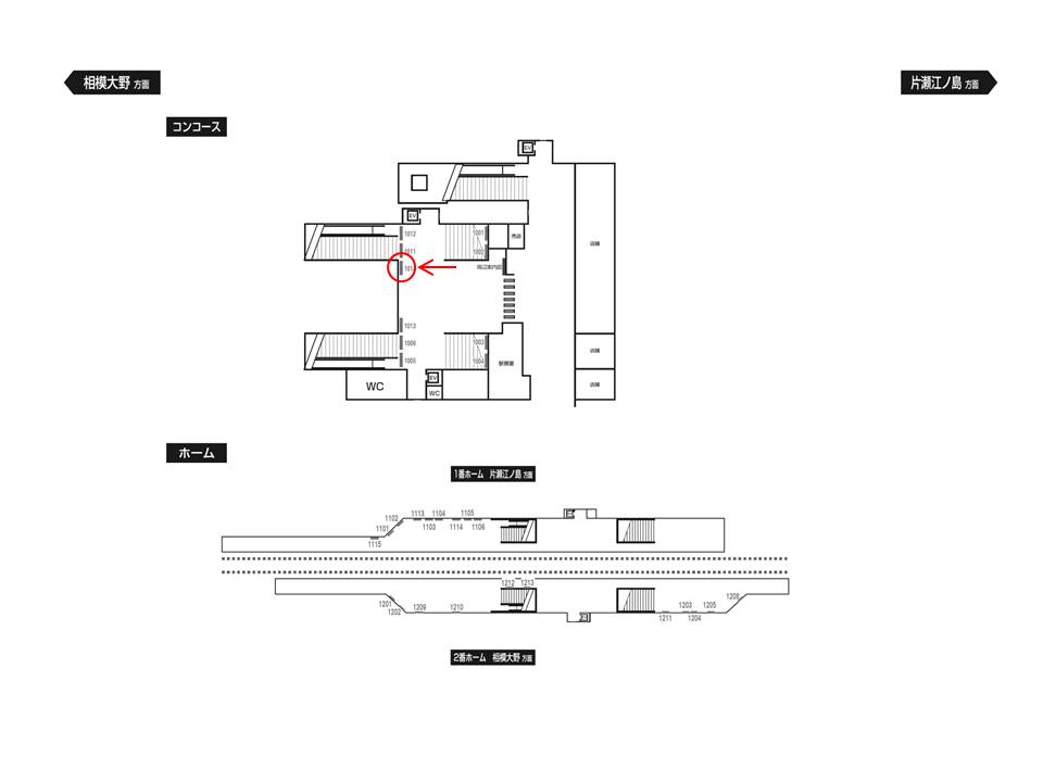 主に改札を入って藤沢・片瀬江ノ島方面へ向かう方、下りホームから階段を上って改札へ向かう方にご覧頂ける場所にございます。