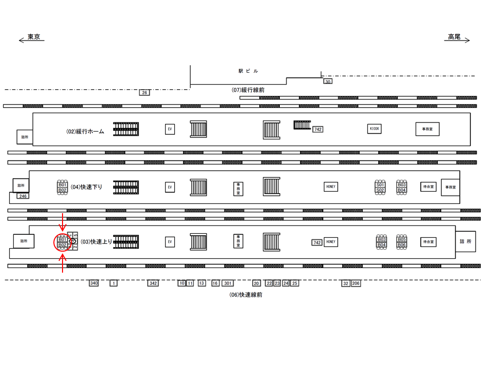 ○快速上り№B03&B04 ホーム上(中央線快速) |
