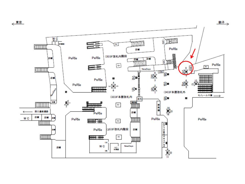 主に千葉公園口から自動改札へ向かう際に見えますが、電車利用者だけでなく、待ち合わせの方や駅構内でショッピングをされる方にも有効な看板です。