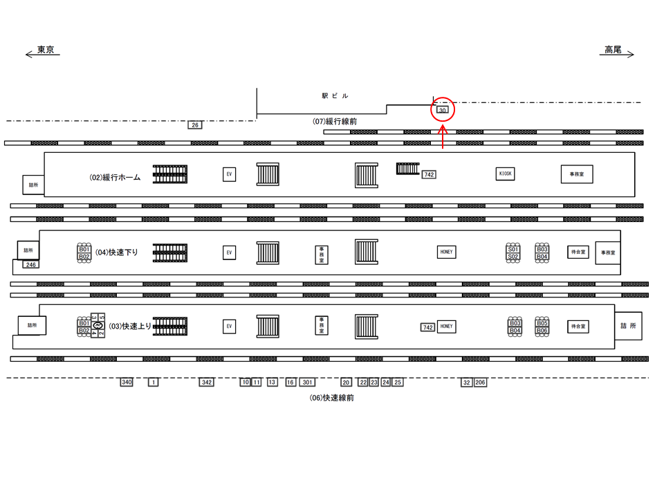 ○快速上り№B01&B02 ホーム上(中央線快速) |
