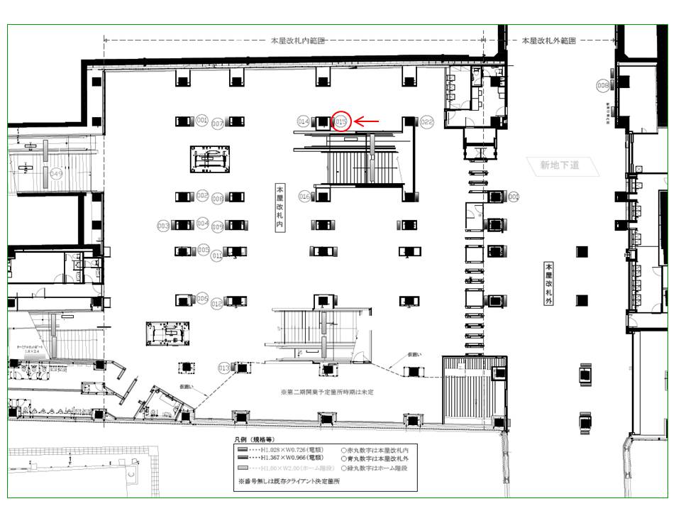 改札とホームを繋ぐ動線としては最も外側の看板となります。ご検討の際は現場をご覧の上、ご検討ください。