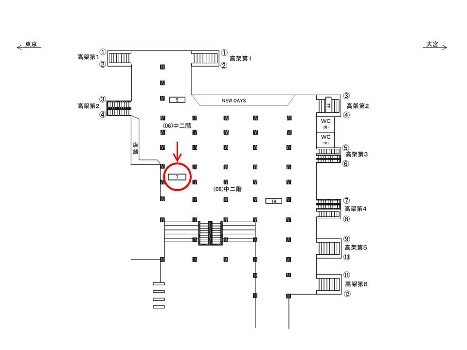 ○高架第一№12 ホーム上(階段正面 JR山手線内回り・JR京浜東北線北行ホーム) |