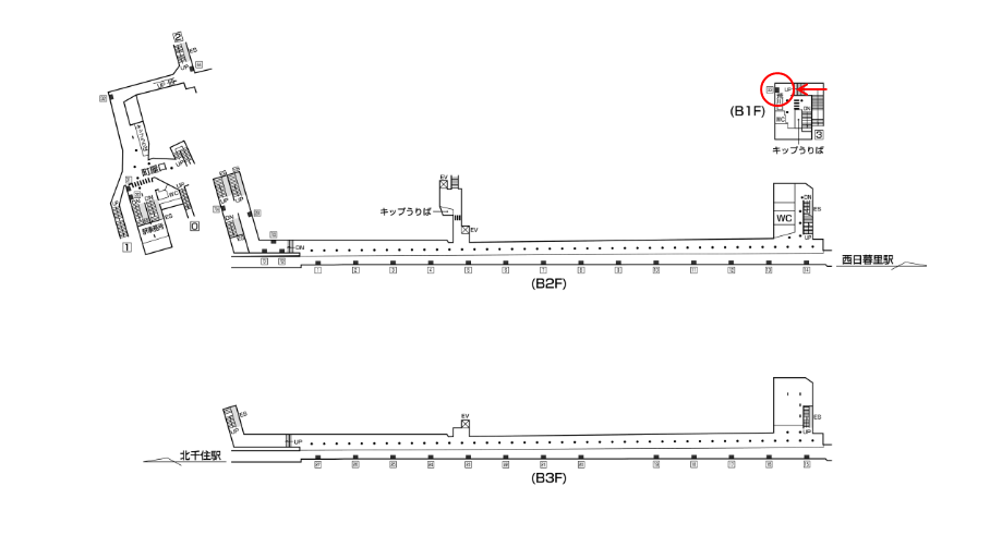 ○千代田線№703 改札内コンコース(町屋方面改札側 地下2階 代々木方面ホーム階) |