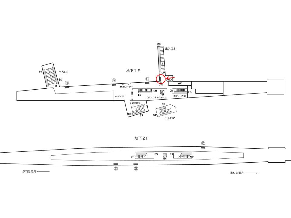 駅ロータリーのある3番出口寄り、地上への階段エスカレーターそばにございます。