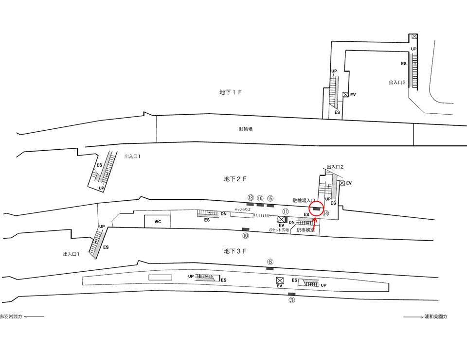 駅ロータリーのある2番出口方面へ向かう通路上にございます。