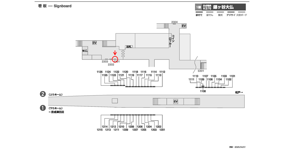 出入りの際どちらからでも見る事の出来る改札近くの看板です。