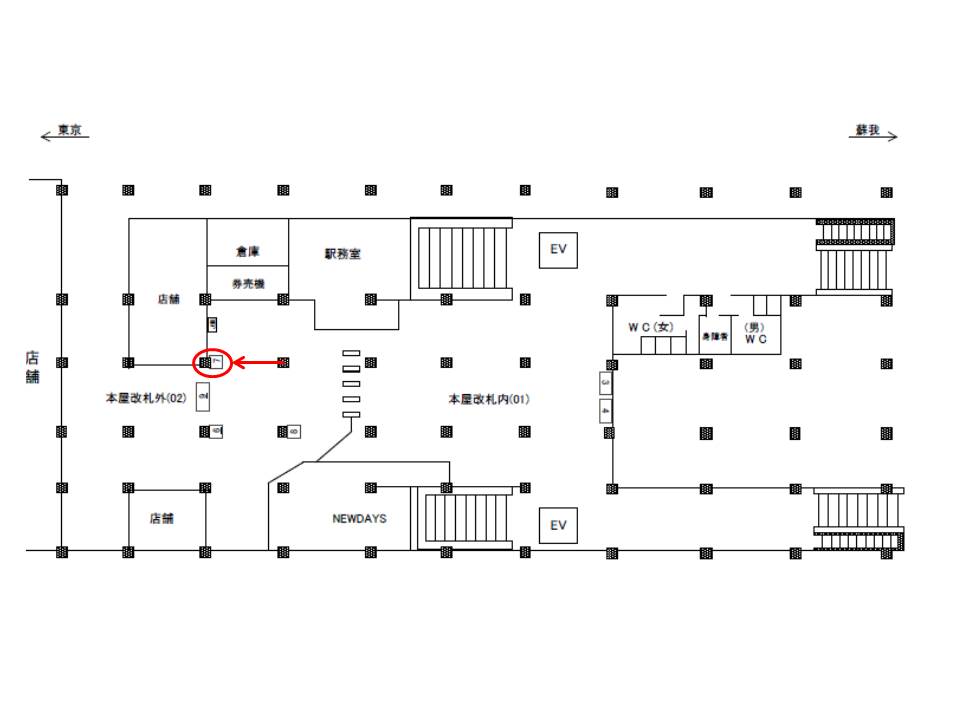JR京葉線 千葉みなと駅の改札外の柱に設置されている看板です。改札を出てすぐ、自動改札のほぼ正面に位置しておりますので、誘導案内用に最適です。