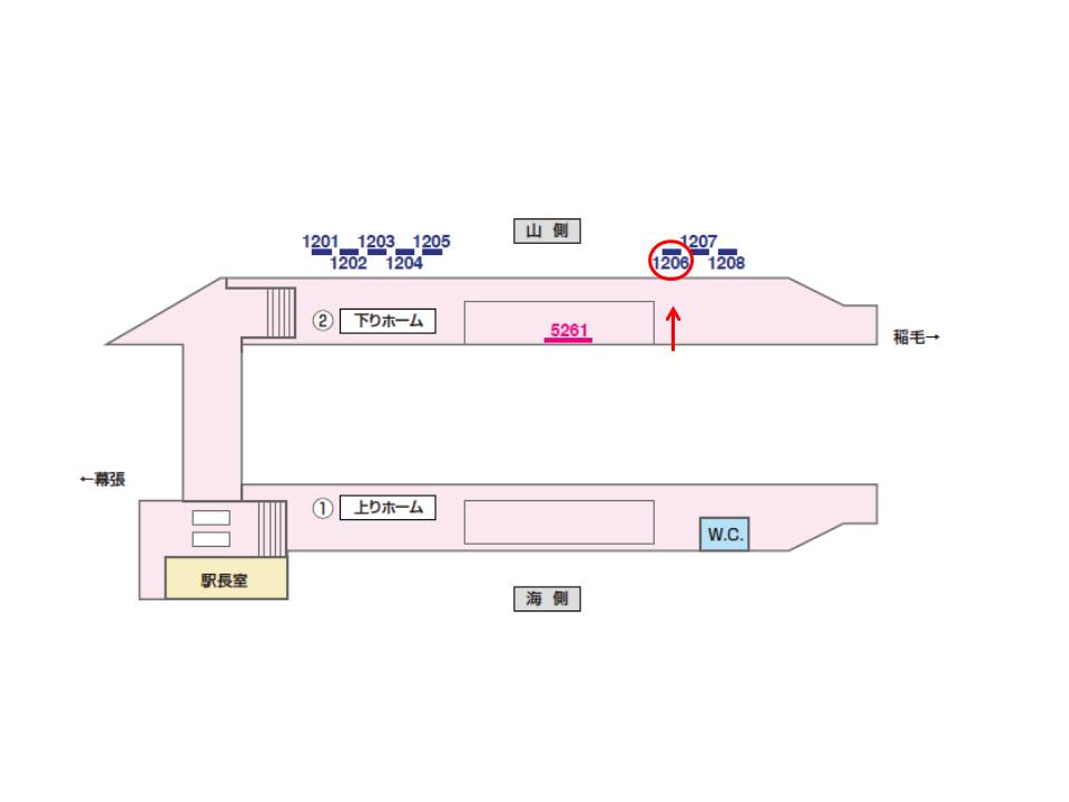 京成千葉線 検見川駅の下りホーム(京成千葉・ちはら台方面)の看板です。