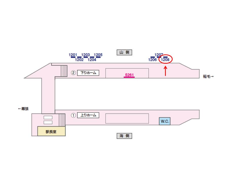 京成千葉線 検見川駅の下りホーム(京成千葉・ちはら台方面)の看板です。