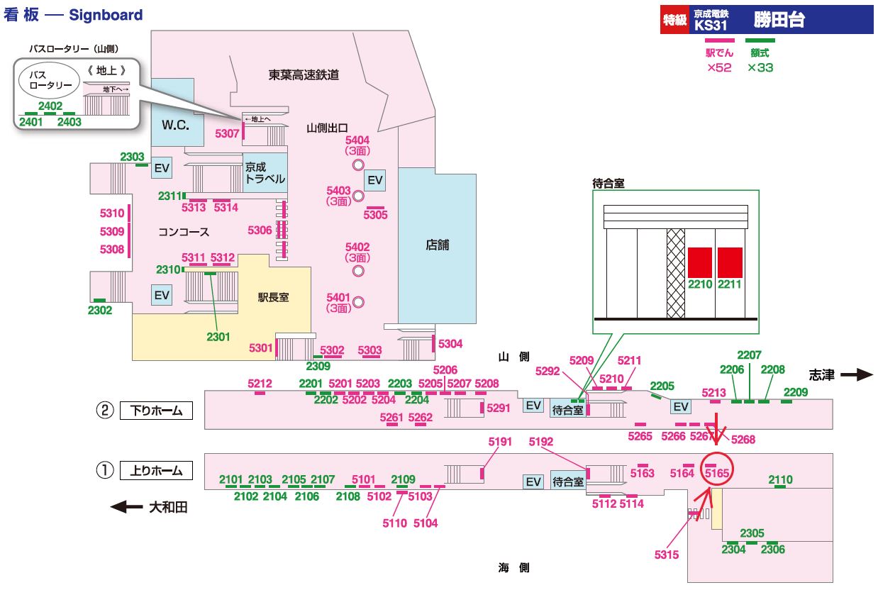 京成勝田台駅は特急停車駅です。勝田台駅で各駅停車から特急に乗り換える方にもPR可能です。