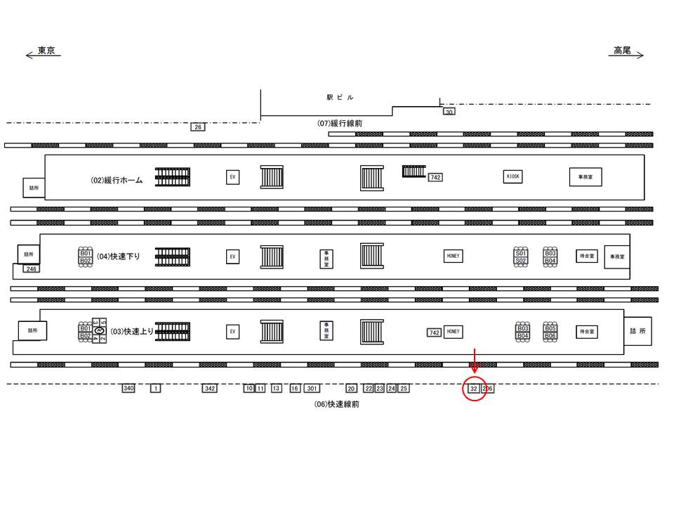 ○快速上り№B01&B02 ホーム上(中央線快速) |