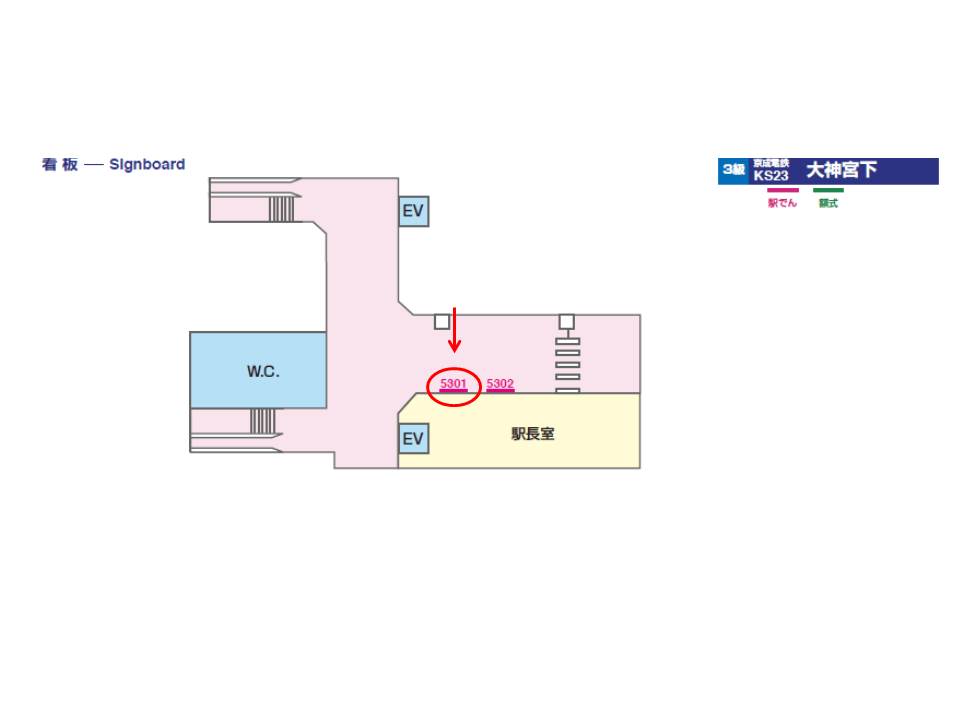 京成本線 大神宮下駅の改札内に設置されている看板です。改札からホームへ向かう際とホームから改札へ向かう際に見える位置にございます。