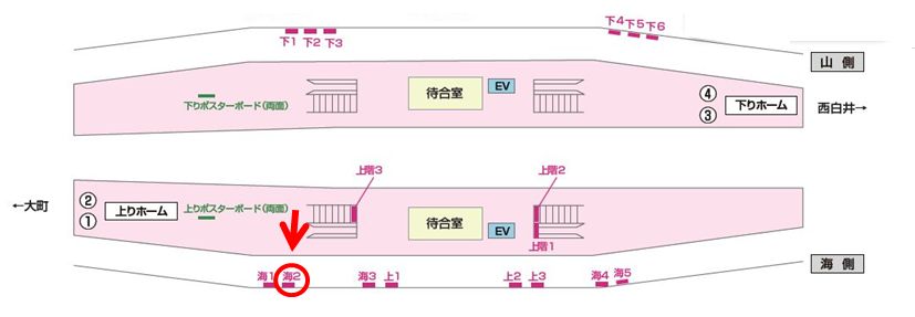 海№2は上りエスカレーター側にございます。